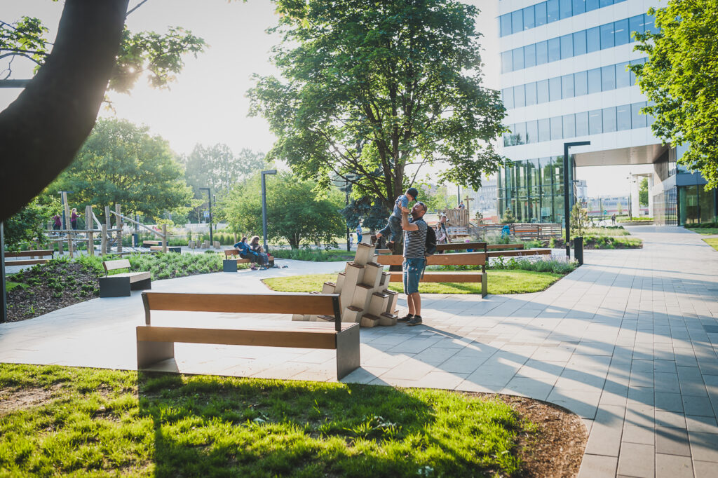 – Podstawą naszej działalności jest budowanie z myślą o współtworzeniu zrównoważonych miast i społeczności. Podejście Skanska zakłada z jednej strony wdrażanie zielonych i energooszczędnych rozwiązań w ramach naszych projektów, takich jak np. niskoemisyjny beton czy antysmogowe chodniki, a z drugiej strony – kreowanie miejsc i udogodnień koncentrujących się na ludziach, ich zdrowiu i potrzebach. Nasze inwestycje i teren wokół nich projektujemy w ujęciu perspektywy długofalowej, tak aby te miejsca żyły, wpisywały się w tkankę miejską i służyły lokalnej społeczności przez lata. Dlatego tak ważna jest dla nas współpraca z miastem i mieszkańcami, ponieważ dzięki zaangażowaniu wszystkich stron powstają projekty, które mogą realnie i pozytywnie wpłynąć na okolicę i naszych sąsiadów – mówi Adam Targowski, dyrektor ds. zrównoważonego rozwoju w spółce biurowej Skanska w regionie CEE.