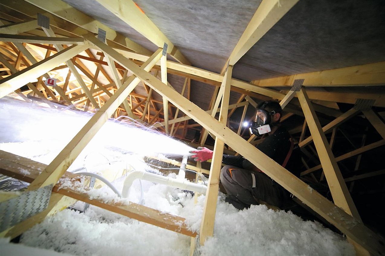 Dużą zaletą zastosowania URSA Pure Floc jest również możliwość wstrzymania prac w dowolnym momencie i kontynuowania procesu po przerwie. Nie ma też potrzeby specjalnego zabezpieczania pomieszczeń przed rozpoczęciem robót – po ich zakończeniu wystarczy tylko pozamiatać. Jako że tego rodzaju izolator nie wiąże się chemicznie lub mechanicznie z innymi elementami czy materiałami, prace ociepleniowe mogą być prowadzone o każdej porze roku, bez względu na temperaturę zewnętrzną i wewnętrzną, a obróbka przegród budowlanych i użytkowanie pomieszczeń są możliwe tuż po wdmuchaniu wełny.
