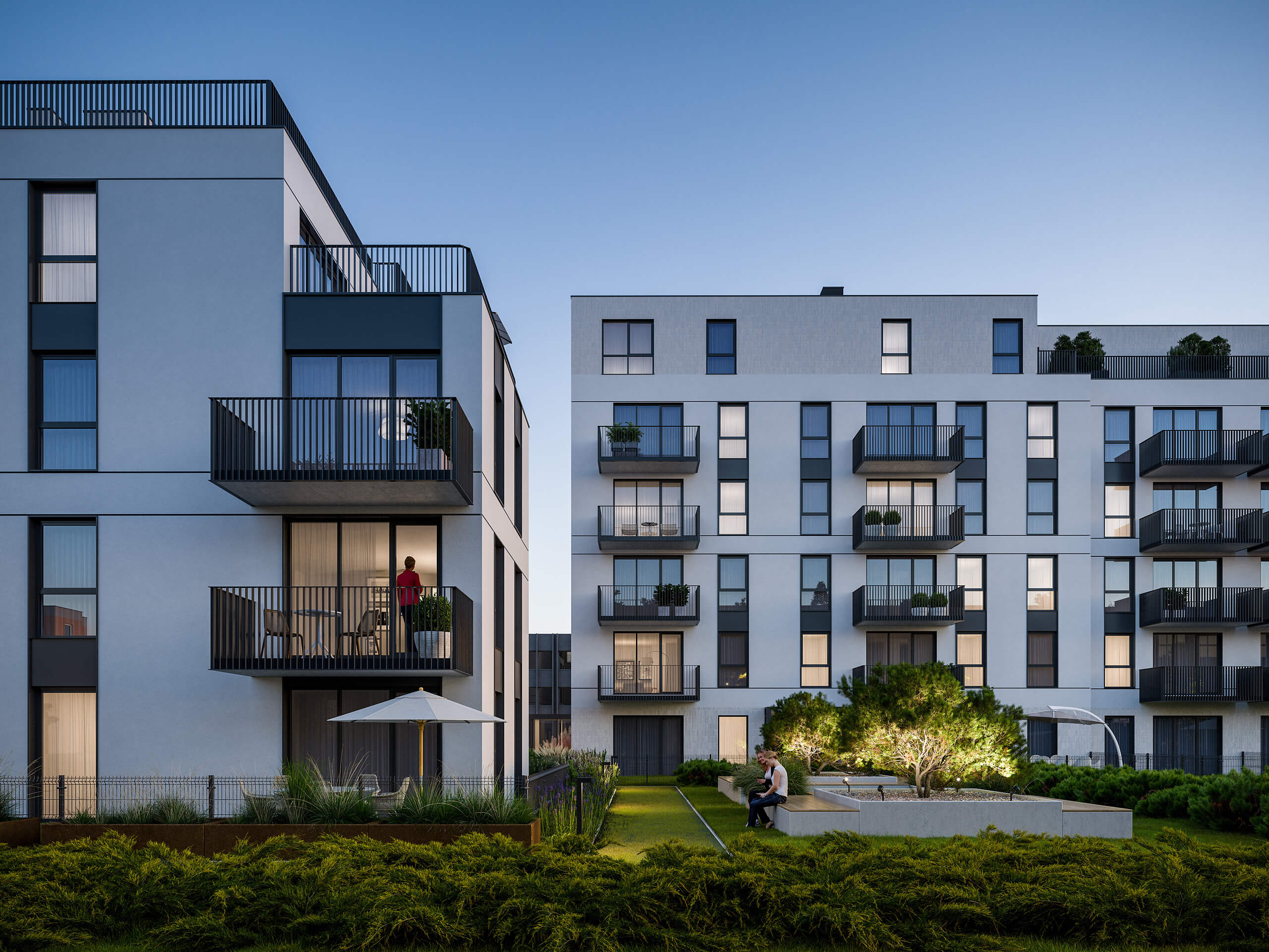 Do lokali położonych na parterze przynależeć będą ogródki, natomiast mieszkania na wyższych kondygnacjach posiadać będą przestronne balkony. Właściciele lokali na najwyższych piętrach będą mogli cieszyć się dostępem do prywatnych, dużych tarasów zaprojektowanych na dachach budynków, które stworzą wiele możliwości aranżacyjnych i zagwarantują doskonały widok na okolicę. W ramach osiedla RYTM oferowane są również 2 lokale usługowe położone na parterze jednego z budynków.